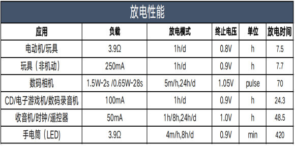 開路電壓 1.5-1.68V 3.9Ω放電時(shí)間* 7.2h